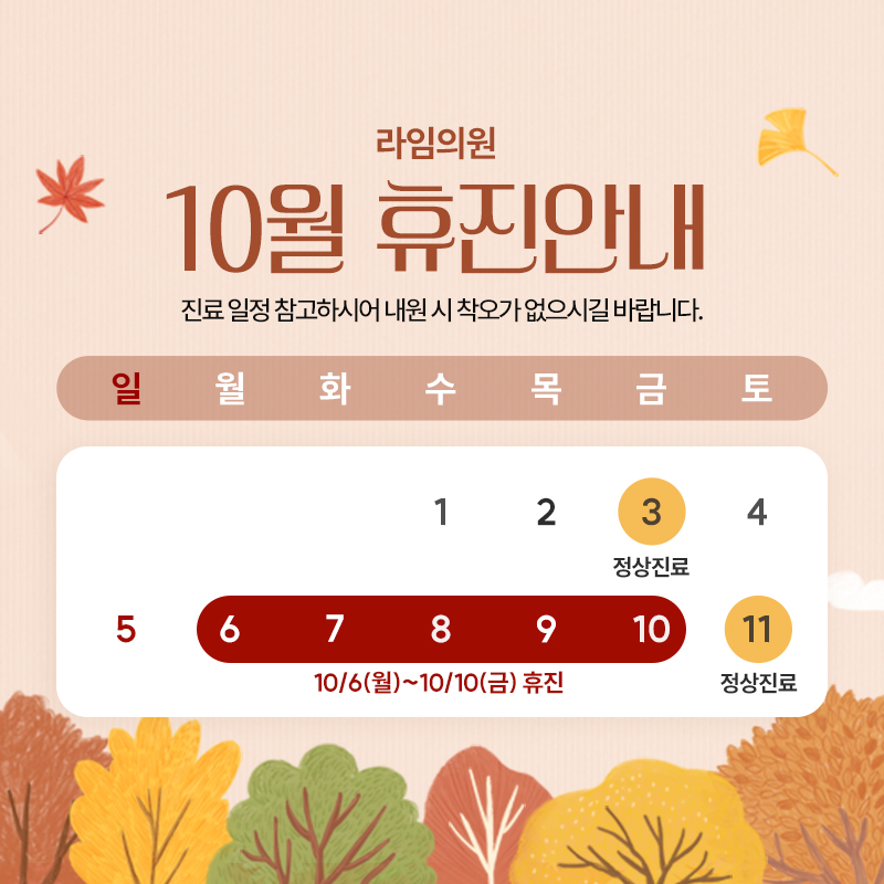 방문 전 반드시 진료시간을 확인하여 진료에 착오가 없으시길 바랍니다.